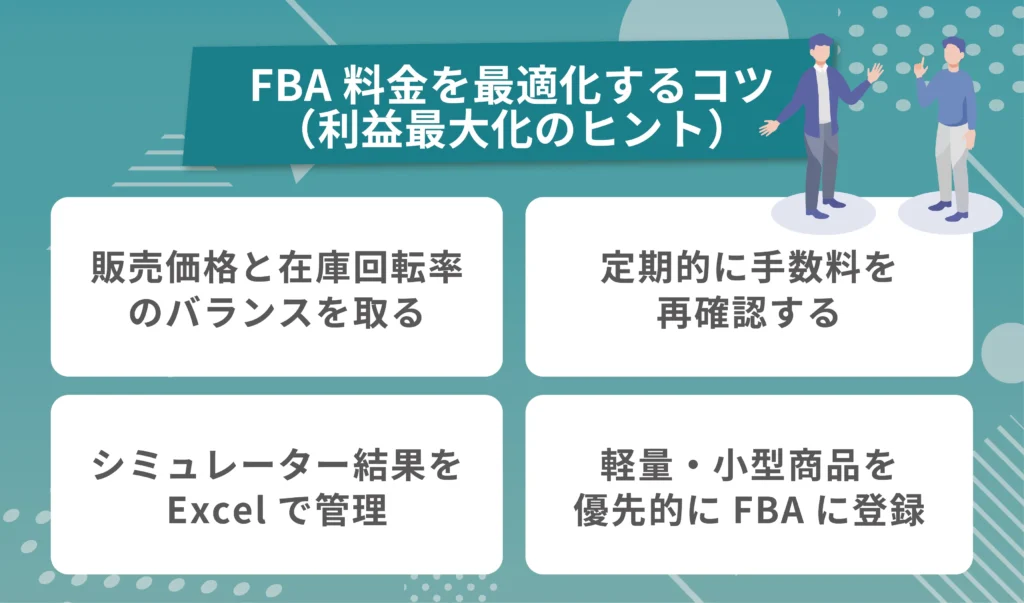 FBA料金シミュレーターを活用し、手数料・仕入れコスト・販売価格の関係を可視化しながら、最も効率的な価格帯を見つけることが大切です。