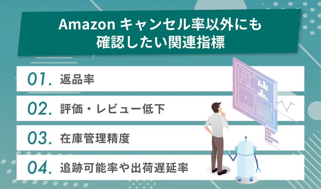 キャンセル率だけ改善しても、他の指標が悪化していれば、結果として購入者満足度の低下やアカウント評価の悪化につながる可能性があります。
